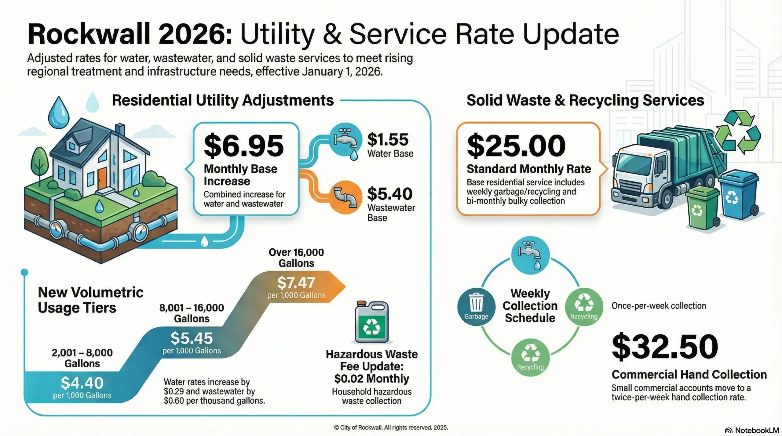 Starting January 1, 2026, the City of Rockwall has implemented updated utility rates and service structures to address rising operational costs and regional standards. Whether you are a long-term resident or new to the area, understanding these changes is essential for managing your monthly household budget.