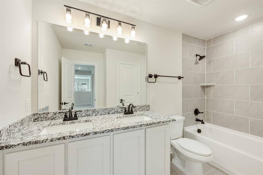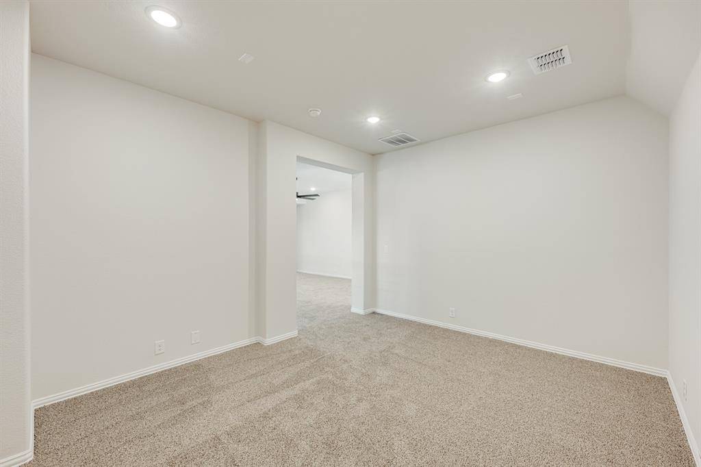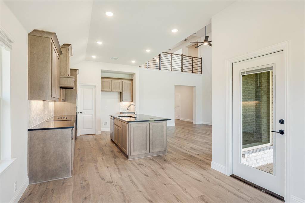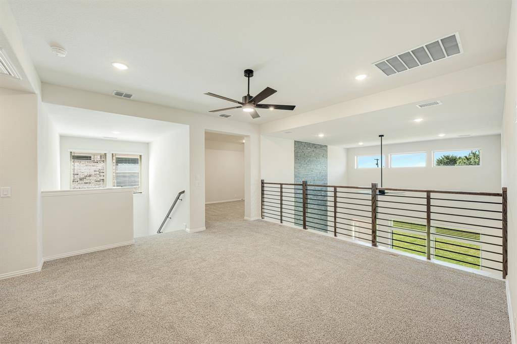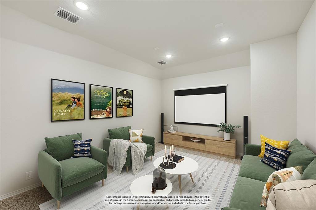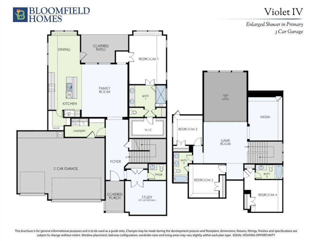 NEVER LIVED IN NEW HOME! Introducing Bloomfield's Violet IV floor plan, a two-story sanctuary boasting 4 bedrooms and 3.5 baths. Step into elegance with a Formal Dining Room and a private Study enclosed by Glass French Doors, while soaring vaulted ceilings and an open horizontal railing at the Game Room enhance the home's airy feel. Laminate Wood floors extend through all public areas, complementing the Deluxe Kitchen, which impresses with Shaker-style saddle cabinets, Quartz countertops, a herringbone backsplash, a wrapped island, under-cabinet lighting, a trash can pull-out, and built-in all-electric SS appliances, including an electric cooktop beneath a striking wood vent hood. The inviting Family Room is anchored by a dramatic Stone-to-Ceiling Fireplace with a cedar mantel, adding warmth and sophistication. A wall of windows with built-in seats invites natural light, while blinds provide privacy. The Primary Suite is a serene retreat, featuring an upgraded Super Shower, Quartz-topped dual vanities, and a generous walk-in closet. Upstairs, a spacious Game Room and Media Room offer endless entertainment. Thoughtful details such as exterior uplights, gutters, and an 8' 6 Lite Front Door enhance curb appeal, while an oversized interior lot and an extended 2-car portion of the 3-car garage provide ample space. With added comforts like a mud room, granite counters in secondary baths, and stylish Shaker-style white cabinetry in all baths, this home is designed for both luxury and functionality. Contact us or visit our Mockingbird Hills model today!