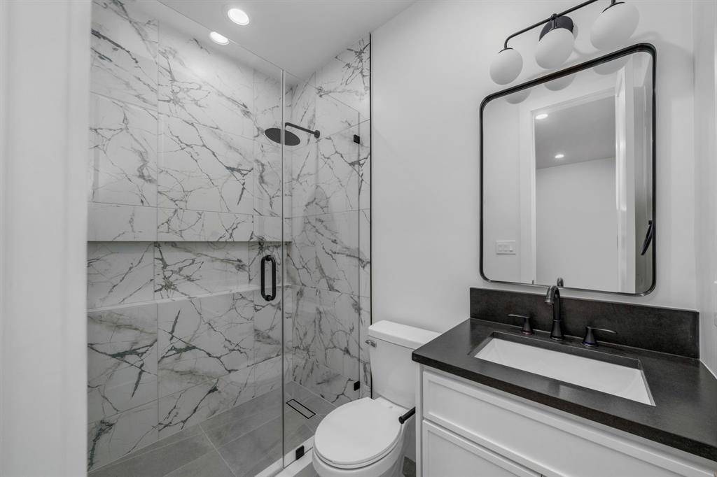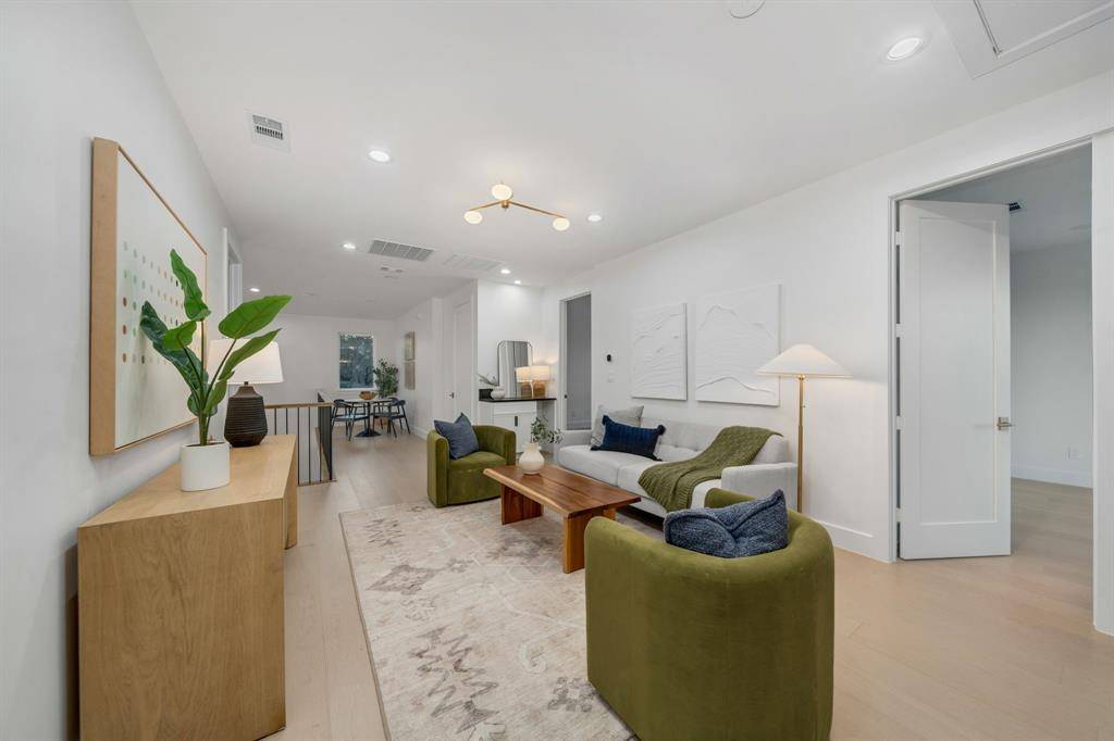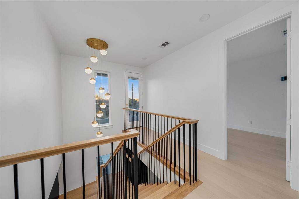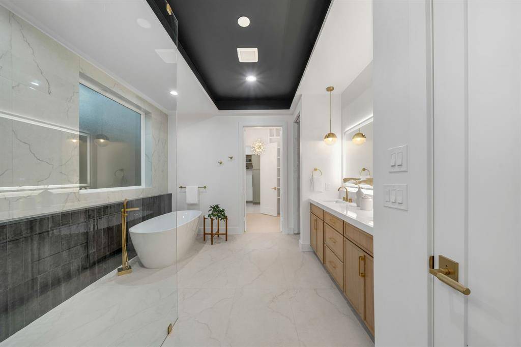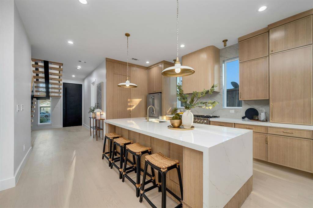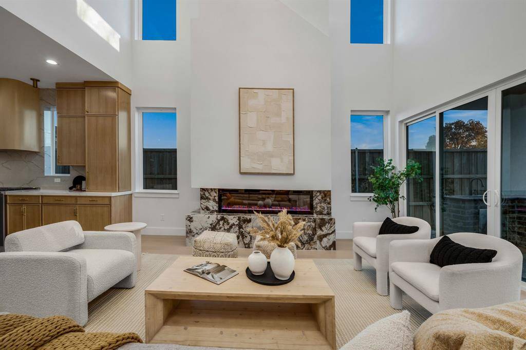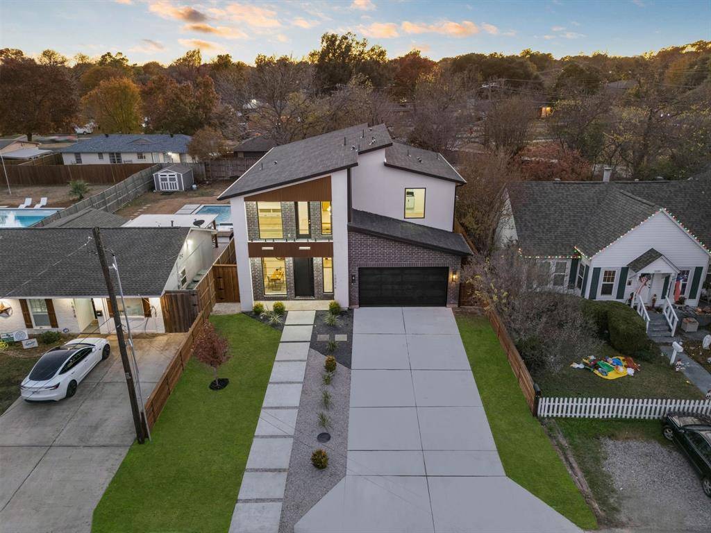 Architecturally striking new construction (2025) blends modern luxury with thoughtful functionality at this stunning Dallas home. This two-story residence features multiple living areas, a dining room, private study, game room, dual laundry rooms, and a two-car garage, all wrapped in high-end finishes and clean contemporary lines. A grand pivot entry door opens to a wide foyer highlighted by engineered wood floors and a dramatic floating staircase. The main-level study features custom stained built-ins and ceiling beams. Designed for entertaining, the chef's kitchen showcases quartz countertops, marble backsplash, expansive modern cabinetry with brushed gold hardware, an oversized waterfall countertop island with breakfast bar, 8-burner gas cooktop, double Forno ovens, farmhouse sink, and a hidden walk-in pantry with coffee bar and wet bar functionality. The kitchen flows seamlessly into the breakfast nook and soaring living room anchored by an oversized marble-accent fireplace and expansive sliding glass doors. The primary suite is a private retreat with backyard access, a spa-inspired bath featuring soaking tub, dual vanities, oversized glass shower with dual shower heads, and a custom walk-in closet connected to the utility room. Upstairs, a game room with dry bar, flex space, additional laundry room, and three secondary bedrooms each offer en-suite baths and walk-in closets. A front balcony adds architectural interest and outdoor enjoyment. The backyard is designed for effortless entertaining with a covered patio, built-in outdoor kitchen, grill, sink, space for beverage fridge, large grassy yard, and a dedicated outdoor half bath ideal for a future pool. Located in sought-after Lake Highlands, enjoy close proximity to White Rock Lake, trails, parks, dining, shopping, and highly regarded schools, with convenient access to major highways and Downtown Dallas.