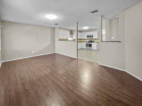 Discover this beautifully updated, move-in-ready single-story home, perfect for families! Situated in a welcoming neighborhood near top-rated schools and convenient shopping, this home offers the perfect blend of comfort and functionality. Inside, the open floor plan features two spacious living areas, ideal for both relaxation and entertaining. A versatile front bedroom serves as a perfect home office or study. Hard flooring throughout ensures easy maintenance, while plush new carpet adds warmth to all bedrooms. The updated bathrooms showcase modern elegance with sleek vanities, stylish fixtures, and sophisticated tile flooring. Tucked away at the back of the home, the private primary suite offers a peaceful retreat with a generous walk-in closet and spa-like bathroom upgrades. The oversized kitchen is a chef's delight, featuring granite countertops, a subway tile backsplash, stainless steel appliances, and a built-in desk space. Step outside to the expansive private backyard, where a covered patio provides the perfect space for entertaining or relaxing in your own outdoor oasis. With modern updates, a fantastic layout, and a prime location, this home has it all! A Must See!!
