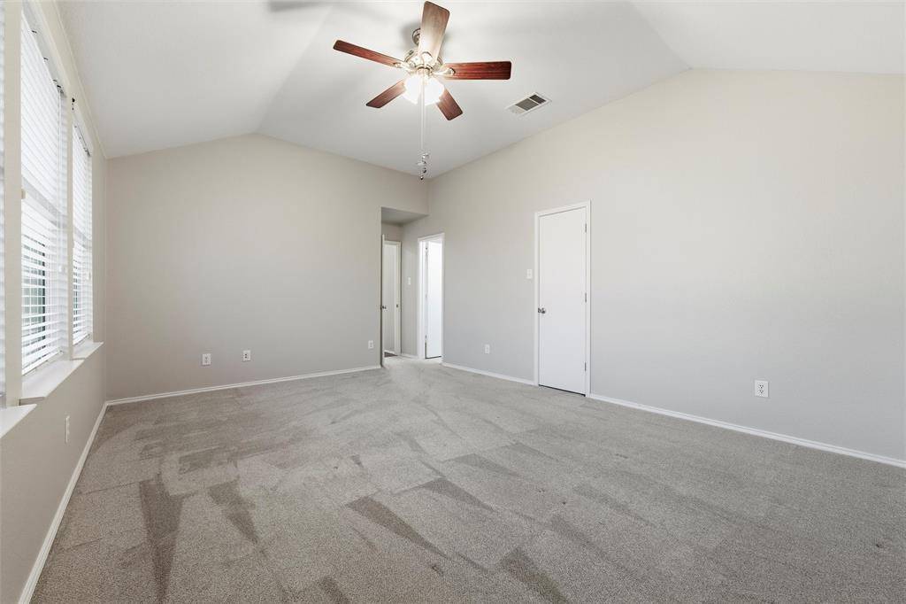 The primary suite features an en-suite bath and a walk-in closet. Secondary bedrooms are spacious with large closets. The backyard offers plenty of space to customize.