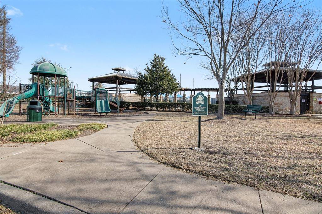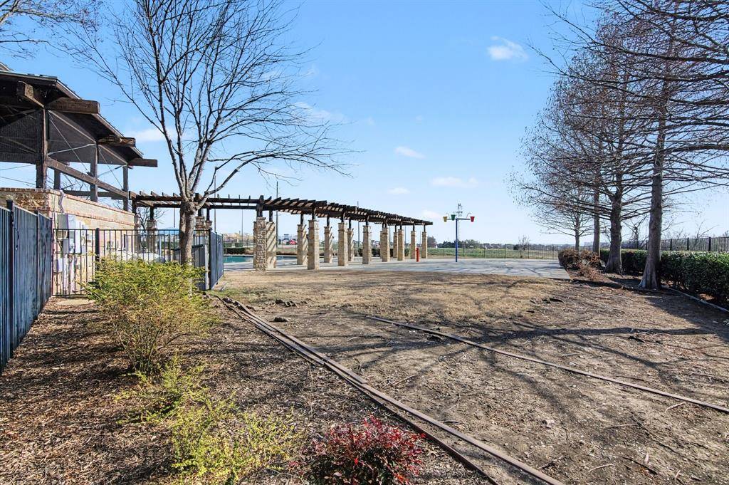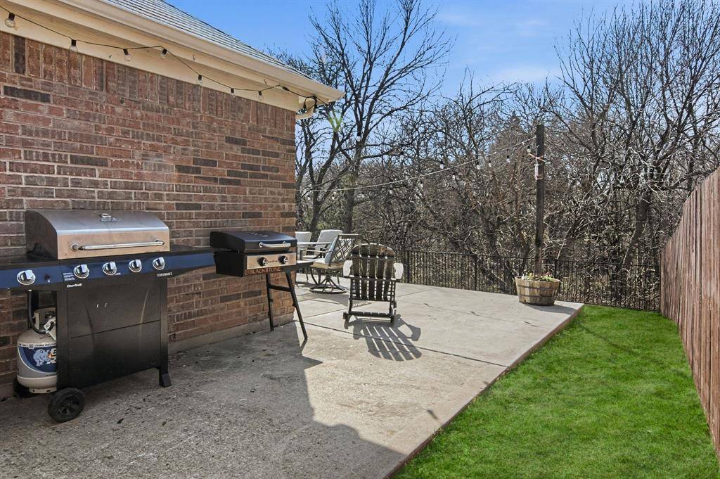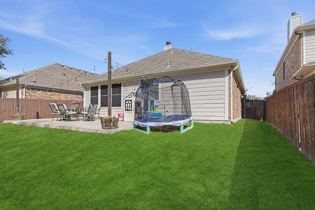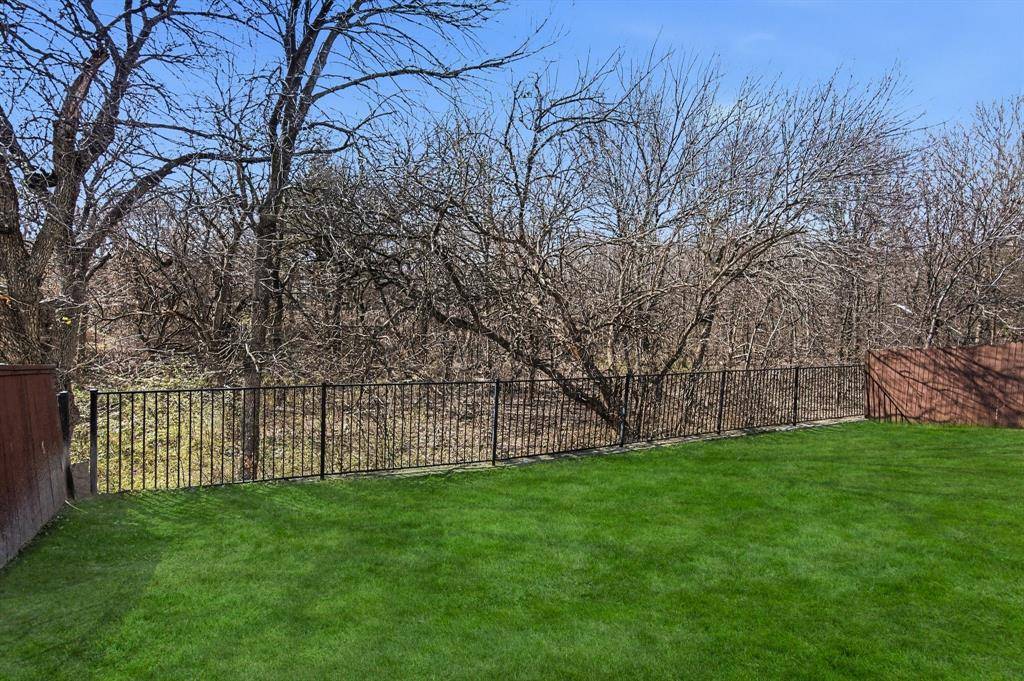 This immaculate move-in ready home offers 3 bedrooms, 2 full baths and a designated study which is perfect for a home office, It features bay windows for plenty of light and it is located at the front of the house for added privacy. The kitchen updates include painted cabinets and updated black hardware, updated range and dishwasher. A gas connection is available in the kitchen. The large living area features a fireplace with a gas starter and has windows to the private back yard. The second living area is currently used as a play area. The large master bedroom also has windows to the backyard. The master bath features a garden tub and separate shower. The open concept is light and bright! Some additional recent updates include updated light fixtures, painting, ceiling fans, luxury vinyl plank in main areas and carpet in the bedrooms. Other improvements include updated HVAC and hot water heater as well as the replacement of the retaining wall. The patio has been extended in the private backyard which backs to a wooded area and small creek. The community includes a pool, and playground. A city park nearby also has a pool, splash pad, jogging trail and more! Highly desirable Prosper ISD. Note: the grass is already becoming greener and the trees will have leaves soon making the backyard even more private and a much nicer view in the back!