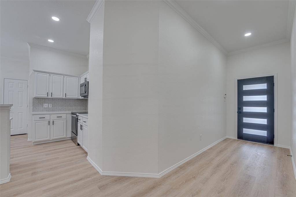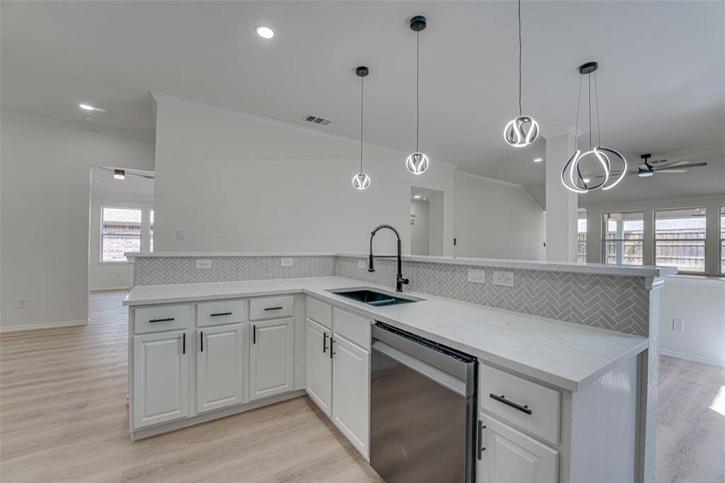 This completely remolded home is perfectly situated towards the end of a quiet cul-de-sac with no neighbors across the street! Prosper ISD rating 9 out of 10 for best middle schools on Greatschools and top 30% for Texas high schools! This beautiful home features 3 bedrooms plus a bonus room which provides versatile space for an office, playroom, or media room. 1,965 sq. ft. of thoughtfully designed living space. The open floorplan is complemented by vaulted ceilings, a cozy fireplace, and decorative lighting throughout. Beautiful and durable, stylish quartz countertops in the kitchens and bathrooms. Updated appliances plus this home includes a stainless-steel fridge!! Plenty of space for cooking and entertaining! Jaw dropping primary shower with frameless glass! Both bathrooms feature stunning tile work and sleek modern finishes including LED Mirrors! All new luxury vinyl plank floors throughout! Step outside to a covered patio with beautiful flagstone look floor! The backyard is professionally landscaped with an automatic sprinkler system and privacy fence. Amazing neighborhood pool, park and walking trails! Priced to sell, this home combines comfort, style, and convenience, with easy access to shopping, dining, and top schools.