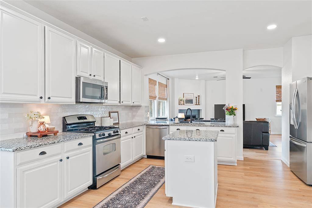 Welcome to this move-in ready home in the community-oriented neighborhood of Birmingham Farms. Situated on a 0.34-acre lot, this two-story home features great curb appeal with lush front landscaping and a patio for outdoor enjoyment. The backyard backs up to a greenbelt offering beautiful views and added privacy. Inside, the first floor offers durable LVP flooring and an open-concept layout. The kitchen includes granite countertops, stainless steel appliances, an island, upgraded backsplash, a walk-in pantry, and plenty of cabinet and counter space. Upstairs, the spacious primary suite features an updated en-suite bathroom and walk-in closet. A loft provides flexible space for an office, playroom, or second living area. Three additional bedrooms and an updated guest bathroom complete the second floor. Community amenities include a playground, splash pad, and pool. Home is in close proximity to the elementary, intermediate, and Jr. high
