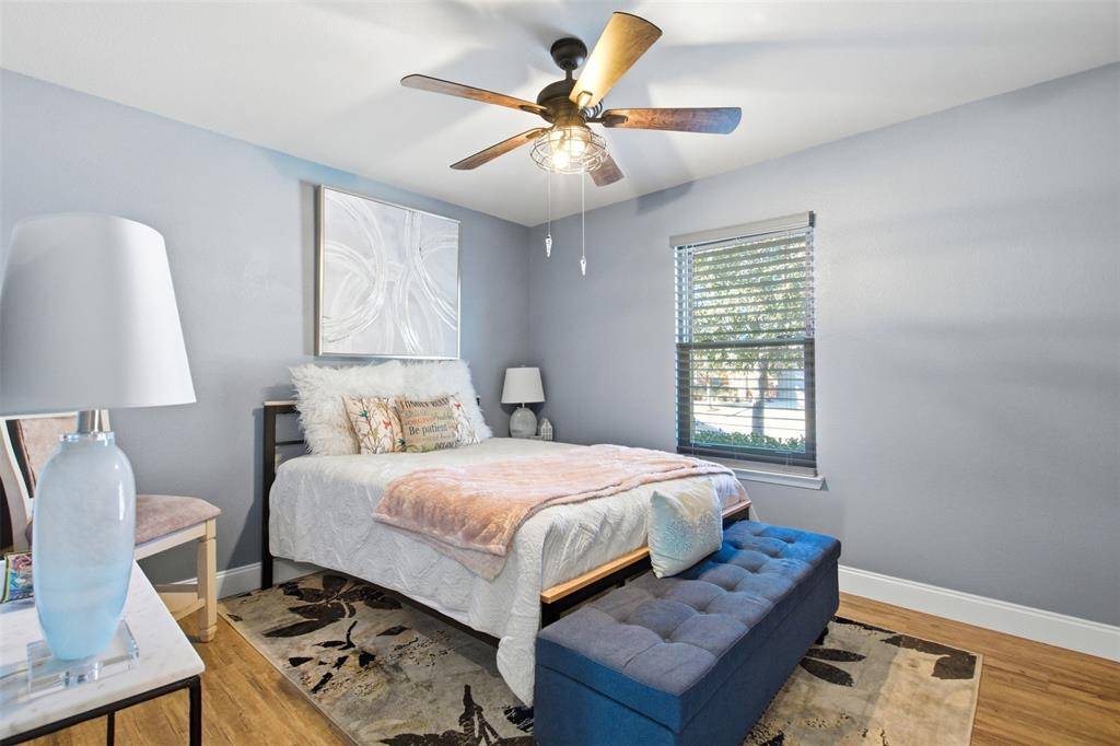The kitchen is thoughtfully updated with a modern backsplash, upgraded cabinet hardware throughout, upgraded induction and convection range, brand new microwave installed Dec. 2025, new dishwasher, and an upgraded farmhouse sink with designer faucet. A custom beverage bar with added storage enhances both functionality and entertaining space. Interior highlights include upgraded lighting throughout, new ceiling fans, newer designer paint, luxury vinyl plank flooring in the front bedrooms and primary suite, widened front 2 bedroom closets with custom sliding barn wood doors, and a beautifully custom designed primary closet.
