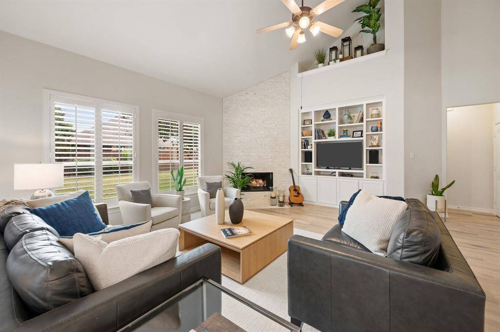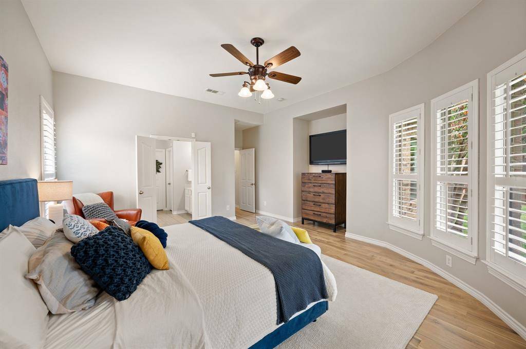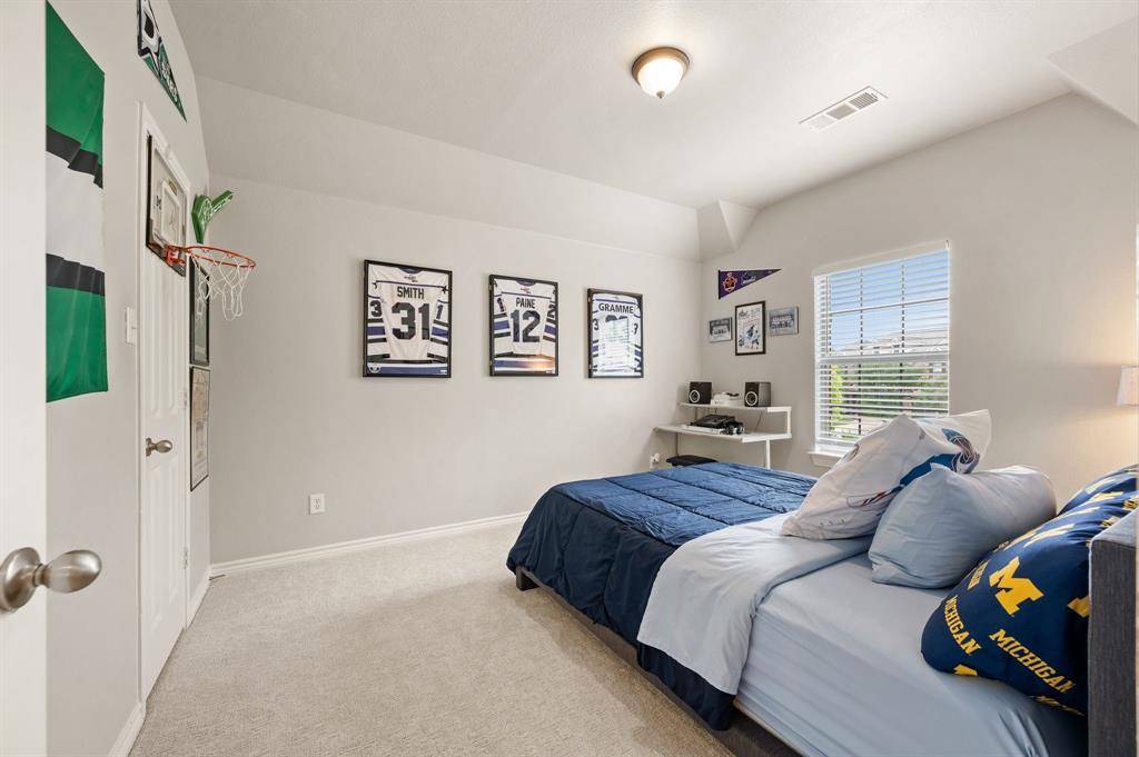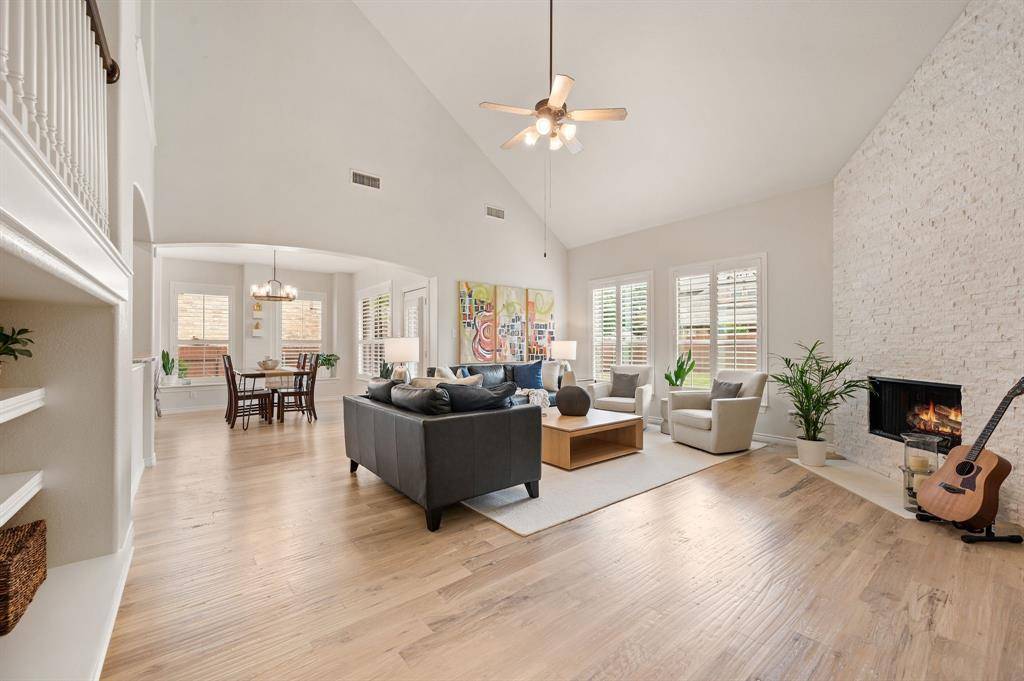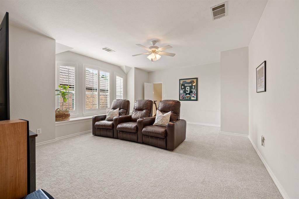Welcome home to an impeccably maintained full-brick home tucked away on a quiet cul-de-sac in the highly sought-after Saratoga community. This spacious layout offers 4 bedrooms, 3.5 baths, 3 living areas, a private office, media room, and a versatile bonus room ideal for home gym, craft room, or holiday storage. The interior has been beautifully refreshed with a light neutral palette and all new flooring in 2025, featuring stunning white oak hand-scraped hardwoods and plush new carpet throughout. The heart of the home is enhanced by a newly updated fireplace with custom stonework, adding character and a cozy focal point. Additional thoughtful upgrades include plantation shutters, updated fixtures, and a tankless water heater ensuring efficiency and modern appeal throughout the home. Designed with both everyday living and entertaining in mind, the home offers generous indoor and outdoor spaces. Step outside to a covered patio and welcoming front porch, ideal for relaxing evenings or hosting gatherings. The oversized lot-just shy of a quarter acre- features a fenced side yard that functions perfectly as a private pet run, offering both convenience and privacy. Located within the prestigious Northwest ISD and just a short walk to highly acclaimed Kay Granger Elementary, the home combines luxury with unbeatable convenience. Residents of Saratoga enjoy a vibrant, family-friendly atmosphere with exceptional amenities including a community pool, playground, miles of scenic jogging trails, and year-round neighborhood events that truly make this more than just a place to live-it's a lifestyle. Meticulously cared for and thoughtfully updated, this is a rare opportunity to own a move-in-ready home in one of the area's most desirable communities. Book a showing at your own risk- you will fall in LOVE!