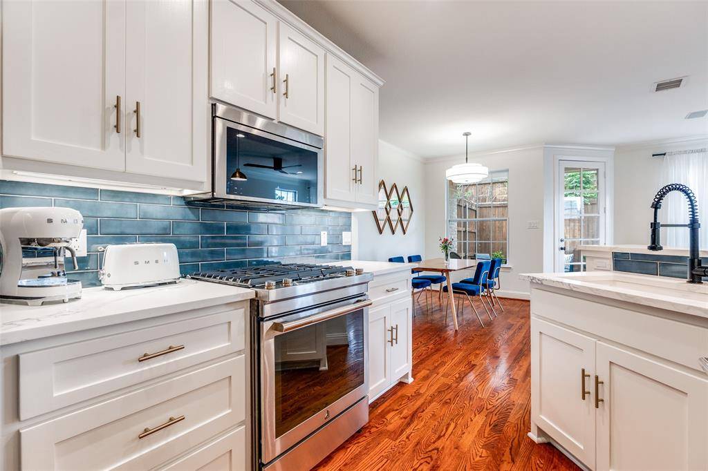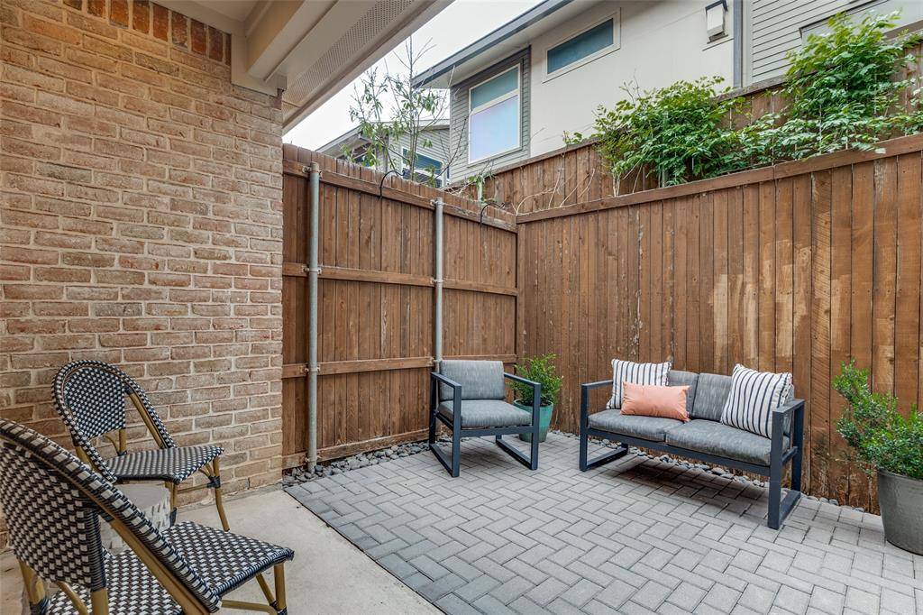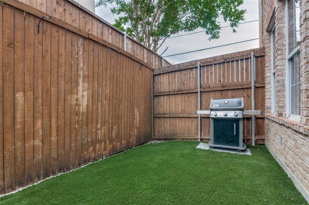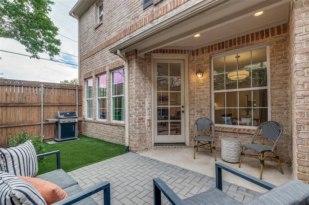 This is a rare end-unit in the Summit Belmont Townhome community, built by esteemed custom builder Oscar Ponder. This refined residence lives like a single-family home and is filled with natural light, offering enhanced privacy and an elevated design throughout. The interior is appointed with upscale finishes, including hardwood floors, solid core doors, and custom wood cabinetry. The kitchen has been beautifully updated with quartz countertops and premium stainless steel Jenn Air appliances. Upstairs, the expansive primary suite offers a sitting area, oversized walk-in closet, and an ensuite bath with quartz countertops, a soaking tub, and modern fixtures. Two secondary bedrooms share a Jack-and-Jill bath with updated finishes. Laundry is conveniently located on the second level. The entire interior of the unit has been recently painted. A private backyard features a brick patio and a turfed grassy area. The home also includes a two-car garage and dedicated guest parking directly in front. Ideally situated just one block from Lower Greenville and moments from Trader Joe's, Starbucks, and Henderson Avenue, this home offers a rare blend of luxury, comfort, and premier location.