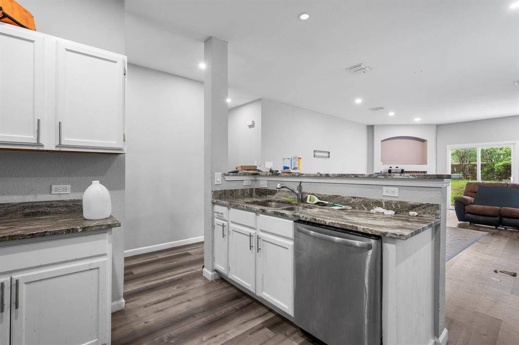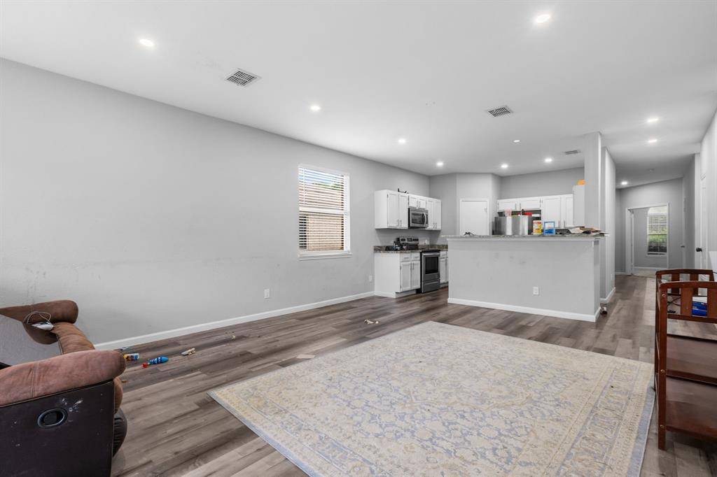 Situated at the end of a quiet cul-de-sac in River Oaks, this updated single-story home offers a functional layout and a spacious lot just under a third of an acre. Inside, you'll find an open floor plan with high ceilings, durable vinyl plank flooring, and recessed LED lighting throughout the main living areas. The kitchen features quartz countertops, updated appliances, ample cabinet storage, and a large breakfast bar that opens to the living room deal for everyday living and entertaining.
