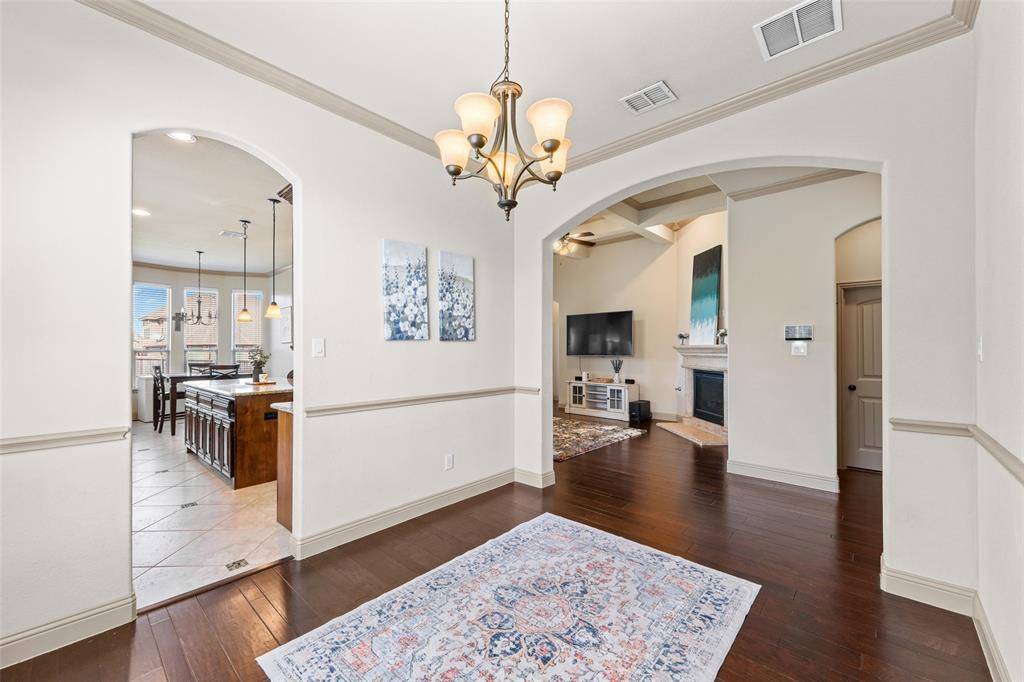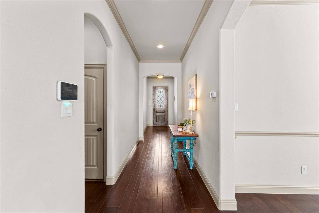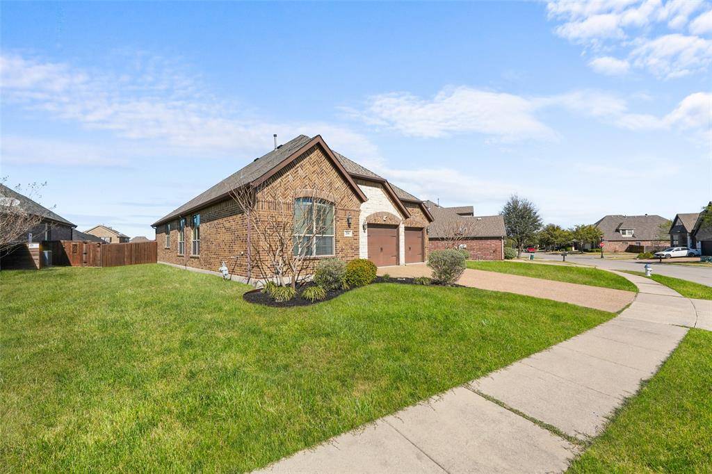 Welcome to 206 Charleston Lane, tucked inside a quiet cul-de-sac in the sought-after Williamsburg Community. This beautifully crafted Megatel Home home offers 3 bedrooms, 2 baths, and nearly 1,844 square feet of thoughtfully designed living space. From the moment you arrive, the home impresses with beautiful curb appeal, fresh landscaping, and a stone aggregate driveway. Inside, dark engineered hardwood flows while mosaic tile flooring and handsome architectural touches complement a functional floor plan that flows effortlessly for both everyday living and entertaining. The kitchen serves as the heart of the home, featuring a large center island, decorative pendant lighting, granite countertops, stainless steel appliances and a deep sink with large picture window for natural light. The dining room easily connects to the kitchen and can easily be used as a dining room, office, or flex space. The spacious primary suite includes a sitting area flanked by windows. Oversized primary bathroom includes granite countertops, a jetted soaking tub, separate shower, and a large walk-in closet. Step outside to a a spacioius backyard that is pool-ready, with a large covered patio and plenty of room to create your dream outdoor space. Recent updates to the home include a NEW ROOF, paint, and hvac updated in 2021. Residents enjoy access to resort-style amenities including a clubhouse, swimming pools, playgrounds, a fitness center, and scenic trails. Conveniently located near Lupe Garcia Elementary and Ursala Rakow middle schools. This gem is in Rockwall ISD and provides quick access to Interstate 30 plus nearby shopping and dining.